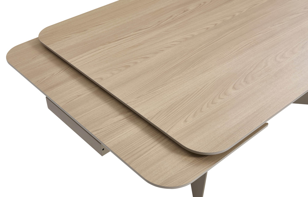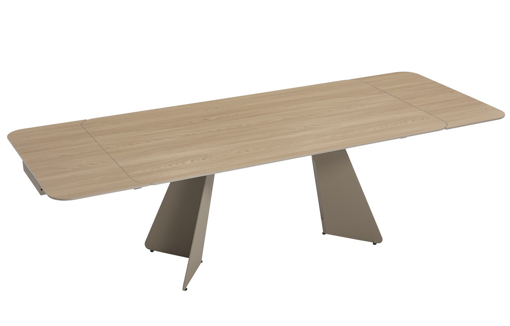 Raztegljiva miza LINIOS je raztegljiva miza v rjavi barvi, ki se lahko z dvema podaljškoma raztegne iz dolžine 180x90 cm na 180x90 ali na 260x90 cm. Mizna plošča je debeline 20 mm, pokrita z 0,6 mm debelo plastjo furnirja v imitaciji belega hrasta. Okvir mize je izdelan iz 6 mm debele kovinske plošče, pokrite z 1,5 mm debelim furnirjem v isti imitaciji lesa. Podnožje mize je izdelano iz kovine, z dvema velikima nogama ki zagotavljata stabilnost. Maksimalna nosilnost mize je 50 kg.