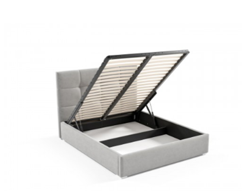 Postelja je opremljena z letvenim podom s 50 letvicami, vpetimi v kovinski okvir. Sistem z amortizerji omogoča enostavno dvigovanje in dostop do prostornega shranjevalnega predala pod ležiščem.