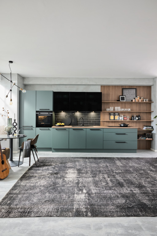 Kuhinja CINDY je izvedljiva kot klasična kuhinja z ročaji ali v vedno bolj iskani izvedbi Linea brez ročajev. Na dotik prijetna ličnica vas bo navdušila tudi v kombinaciji z lesnimi dekorji, ki dodajo kuhinji posebno toplino ali pa se lahko poslužite kombinacije z imitacijami betona in kamna, da dodate kuhinji posebno sodoben videz.