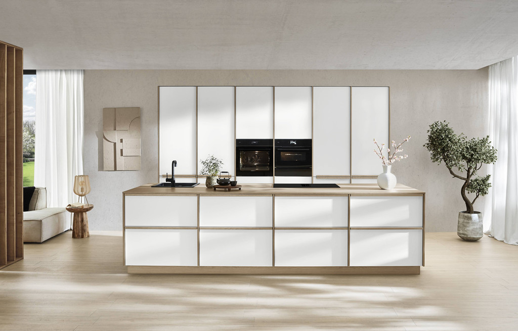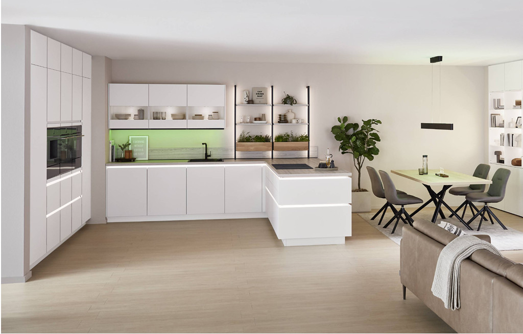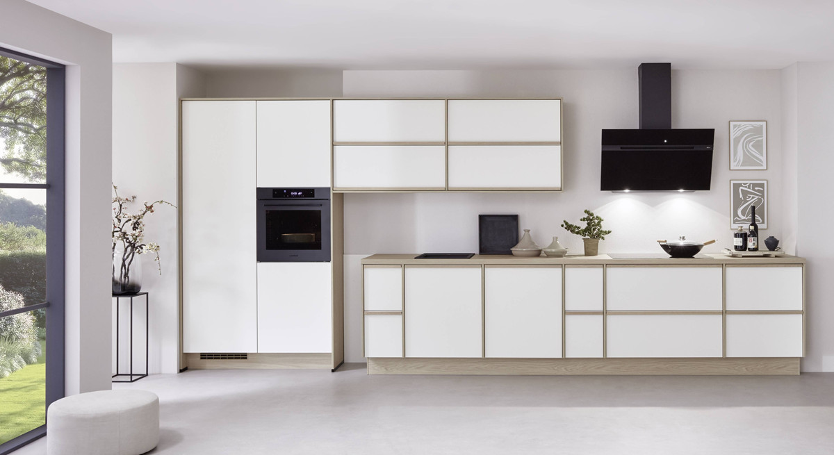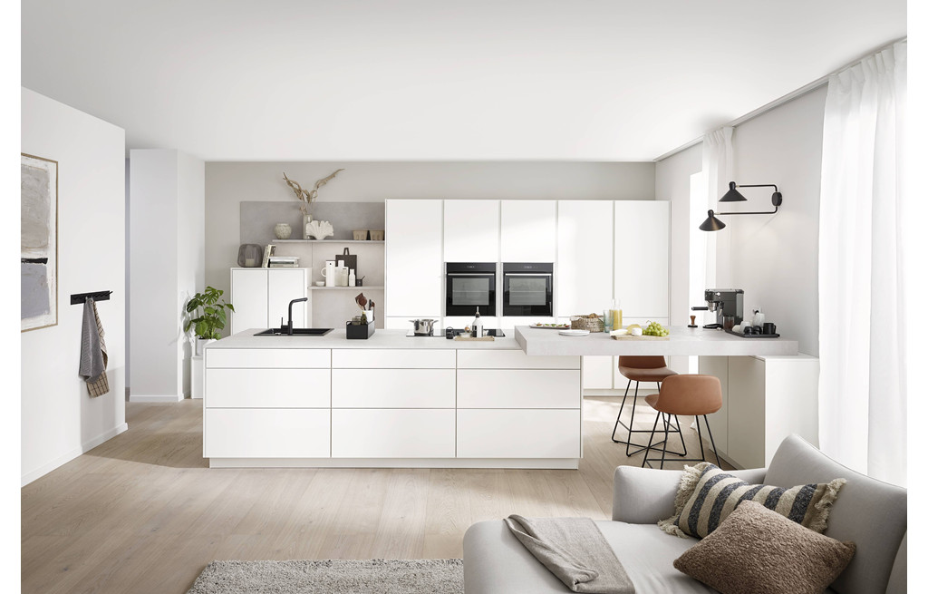 Več prostora, več svobode. Popoln recept za sproščeno družinsko življenje doma. Popolnoma bela kuhinja z lesenimi poudarki navdušuje s svojimi lastnostmi,
