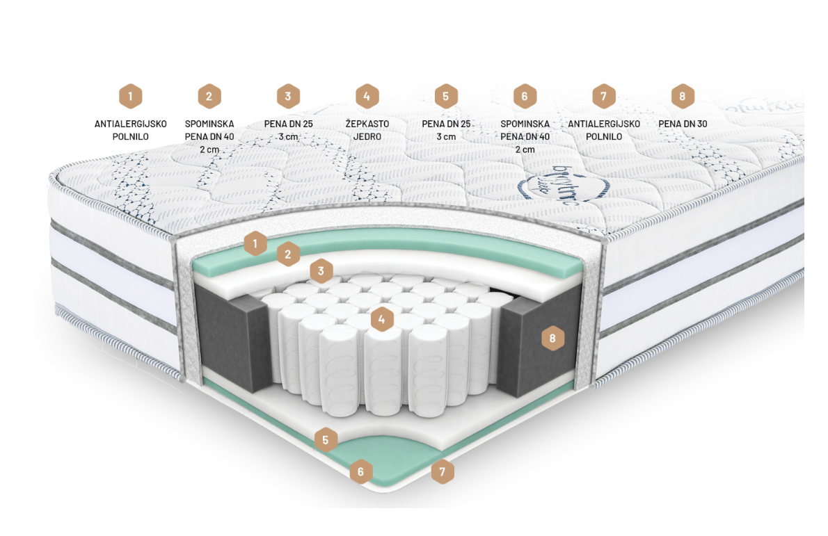 • več slojev spominske pene (DN 40) za vrhunsko udobje