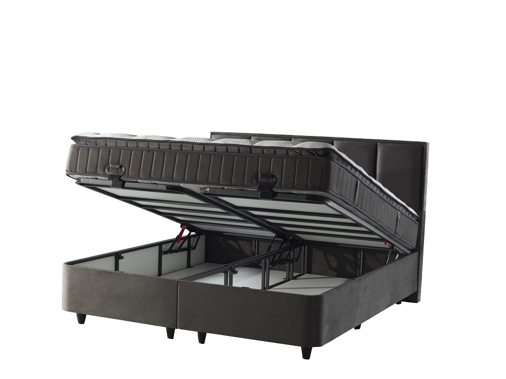 Zahvaljujoč mehanizmu za dviganje postelje, ki je enostaven za uporabo, se pod ležiščem skriva prostoren predal, idealen za shranjevanje posteljnine, odej ali drugih predmetov. Tako bo vaša spalnica vedno videti urejena in prostorna.