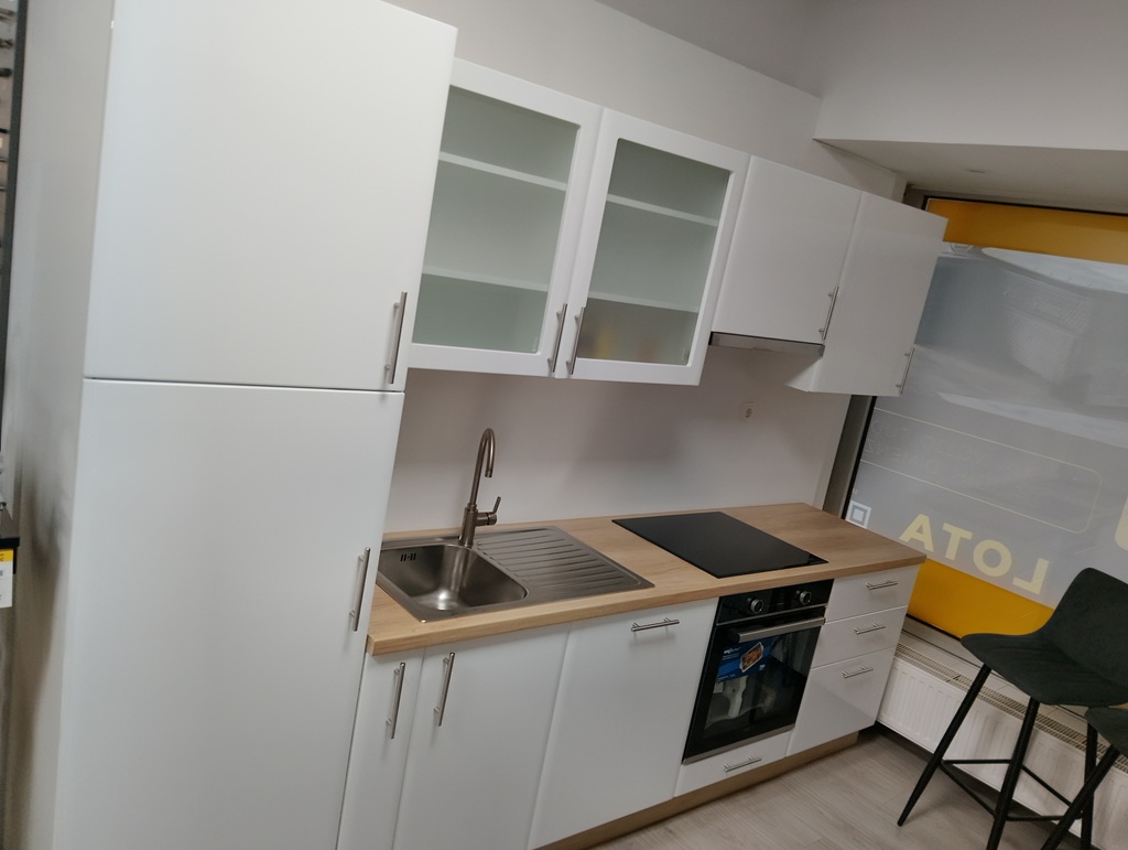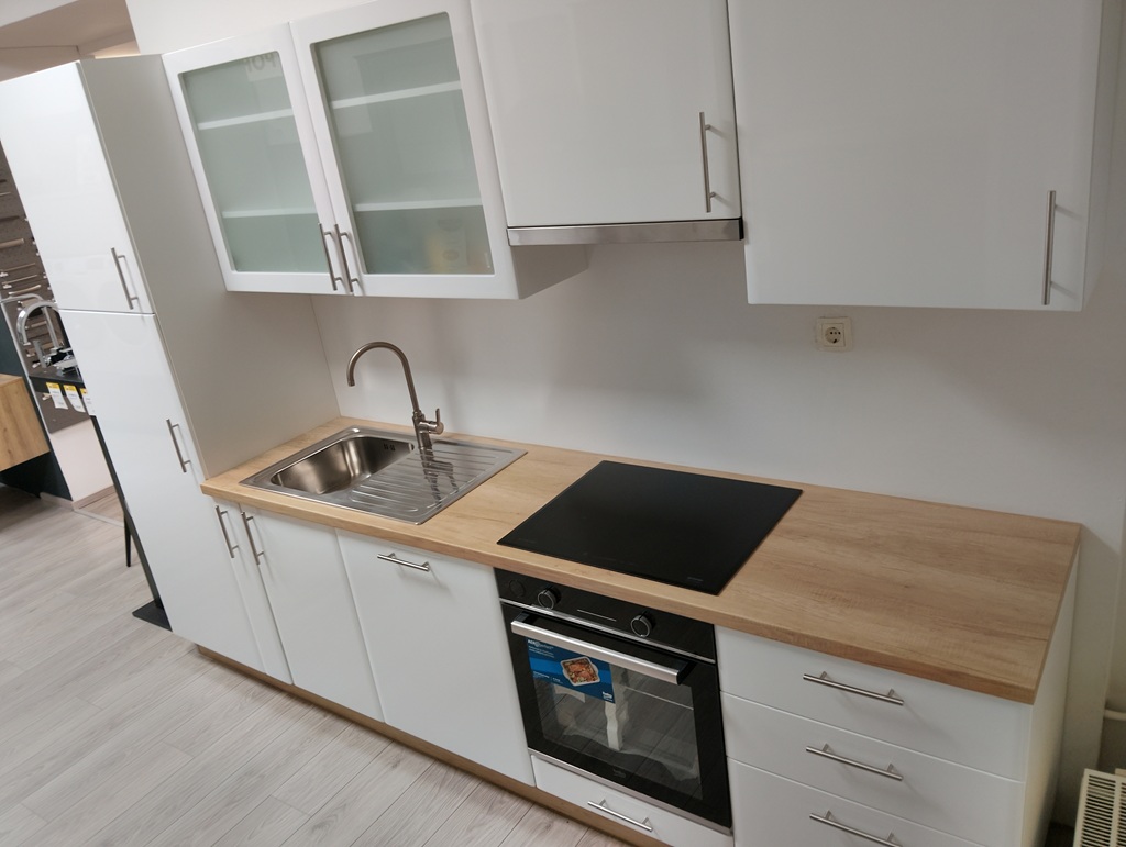Kuhinja Modern, proizvajalca JELA, je na voljo v elegantni beli barvi. Gre za moderno, 300 cm široko kuhinjsko postavitev, ki združuje funkcionalnost in sodoben dizajn. Frontne površine so lakirane z visoko obstojnim UV lakom, kar zagotavlja dolgotrajno zaščito, sijajen videz in enostavno čiščenje.