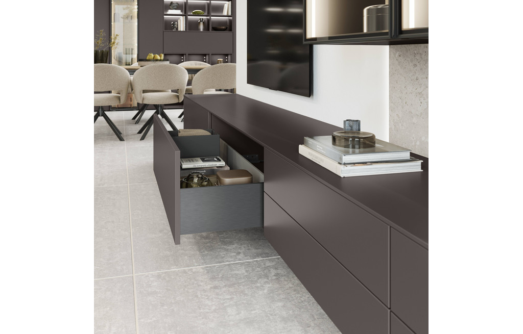 Ustvarite sodoben in estetsko dovršen dnevni prostor s programom SENSO proizvajalca Nobilia. Minimalistične linije, premišljeni detajli in bogata izbira dekorjev omogočajo, da dnevni regal popolnoma prilagodite svojemu slogu ter prostorskim zahtevam.