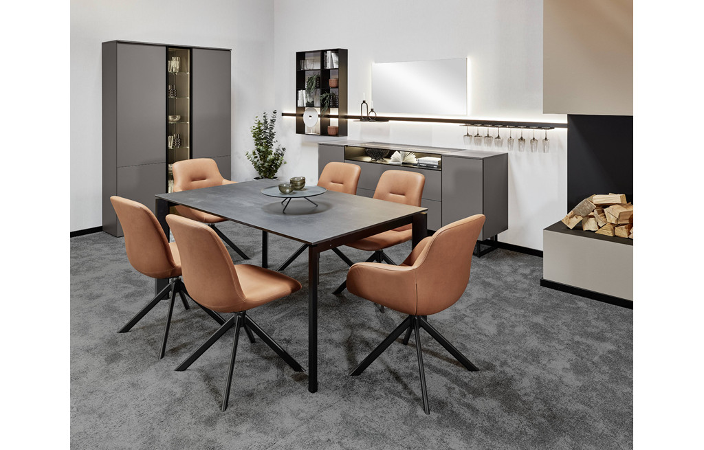 Jedilna garnitura TURN-CHA. Garnituro sestavljajo stoli TURN-CHA in miza . Artikle lahko naročite v različnih barvnih kombinacijah.