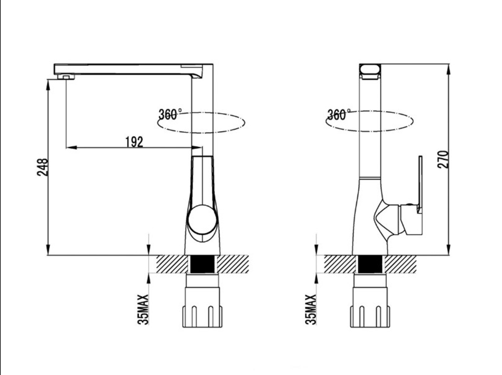 Kakovostna armatura s keramično kartušo za dolgo življenjsko dobo. Zagotavlja tih pretok vode (do 18 dB), prenese pritisk do 7 barov in vključuje vgrajen perlator za mehkejši curek, manj brizganja ter do 50 % prihranek vode. Testirana za dolgotrajno uporabo (100 odpiranj dnevno, 5 let).