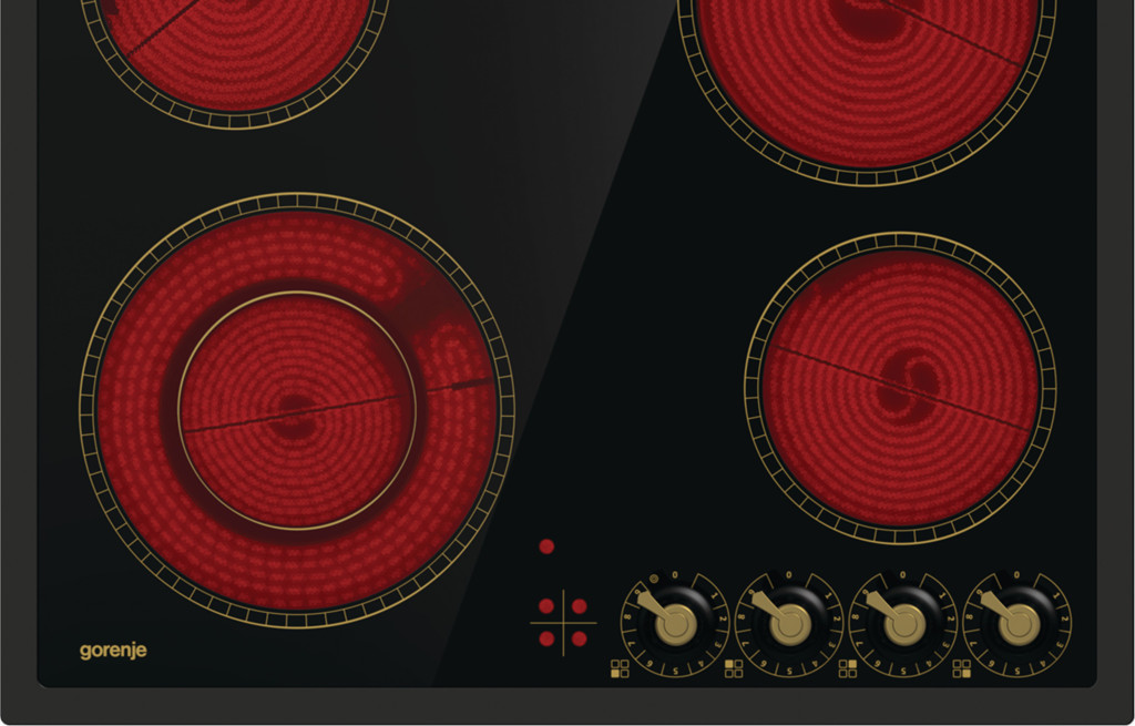 Classico Gorenje Hi-Light kuhalna plošča - EC642CLB, steklokeramična kuhalna plošča ima zraven treh grelnikov hi-light tudi grelnik z dvojno krožno površino, ki se lahko prilagodi loncem in ponvam različnih velikosti. Indikatorska lučka za vsako kuhalno polje bo svetila, dokler površina polja ne bo vroča. Gladka površina kuhalne plošče je enostavna za čiščenje, robovi pa so dvignjeni, da preprečujejo razlivanje.
