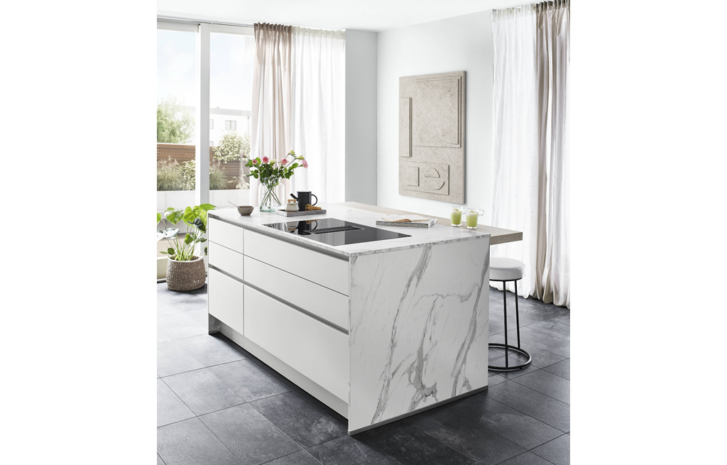 Kuhinja Touch je izvedljiva kot klasična kuhinja z ročaji ali v vedno bolj iskani izvedbi LINE-N brez ročajev. Model je dobavljiv v lak laminatu super mat z zaobljenimi robovi na dveh straneh ličnice. Drzne barve od snežno bele do magnolije, svileno sive, barve vode do temno sive in črne. Na dotik prijetna fronta vas bo navdušila tudi v kombinaciji z lesnimi dekorji, ki dodajo kuhinji posebno toplino ali pa se lahko poslužite kombinacije z imitacijami betona in kamna, da dodate kuhinji posebno sodoben videz.