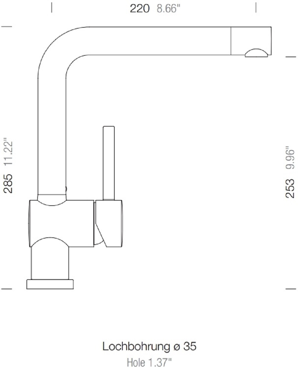 Kuhinjska armatura za visoko tlačni sistem s keramičnimi tesnili, ki zagotavljajo dolgo živiljenjsko dobo, je opremljena z dvema priključnima cevema, za toplo in za hladno vodo.